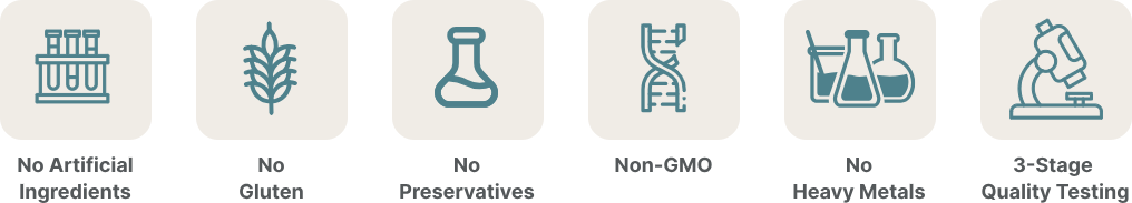 • Our formulas have NO added artificial flavors, colors or preservatives, magnesium stearate, yeast, nuts, soy or sulfates.